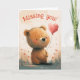 Compartilhe seu amor através dos quilômetros com nosso cartaz carinhoso de Dia de os namorados, com um urso bonito sentado sozinho e segurando um balão em forma de coração. A mensagem sentida "Desaparecidos!" faz dela a escolha perfeita para expressar afeto numa relação de longa distância ou durante uma separação indesejada. Esta carta única e encantadora é uma maneira maravilhosa de mostrar seu amor e fazer seu namorados se sentir especial, apesar da distância. Avise-os que estão em seus pensamentos e próximos de seu coração com este gesto adorável e significativo.
