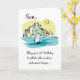 Um barco à vela navega por uma paisagem urbana na frente deste cartão que foi projetado para dar boas-vindas ao seu filho num feliz 50º aniversário e enviar-lhe uma mensagem simples e sincera.