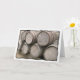 Personalize e personalize este Cartão de Nota Rustic Wooden Barrels com a sua própria mensagem. Este cartão de saudação rústico de vazio apresenta uma fotografia de tom sépia de barris de uísque rústico de madeira antiquados de tempos pioneiros com efeito de borda queimada.
