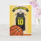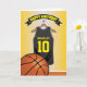 Cartões de boas-vindas para crianças personalizadas no basquete com um fundo amarelo desbotado e uma camisa de basquete preto e amarelo que você pode personalizar com o nome e a idade da criança, e uma bola de basquete no fundo. Este cartão de aniversário de esportes vai impressionar o aniversariante, seja seu filho/filha, sobrinho/sobrinha, neto/neto ou amigo, literalmente qualquer um que esteja louco! Não se esqueça de adicionar sua mensagem especial dentro no cartão!