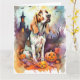 Cartão Basset Hound do Halloween com Abóboras Assustador