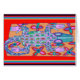 Laranja, turquesa, design gráfico em um cobertor de praia. Sudoeste, gráfico africano de croco sorridente. Tucson, Arizona, Virginia Vivier design.