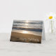 Feliz cartão de aniversário de 75 anos com uma fotografia das ondas na praia no pôr do sol e verso pensativo.