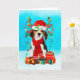 beagle se divertindo na neve com presentes de Natal vestindo chapéu do Papai Noel e com luzes de Natal é uma ideia de presente perfeita para quem ama esta raça de cachorro