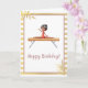 Belo cartão de aniversário com uma garota negra em um feixe. Este cartão de aniversário de ginástica tem alguns elementos de ouro, mas não que as partes de ouro do cartão sejam impressas e que não sejam apresentadas folhas de alumínio reais no cartão. Personalize o texto, se desejar, clique em personalizar ainda mais para alterar a fonte, sua cor ou tamanho. Ilustrada e projetada por Patricia Alvarez.