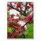 O urso repousa numa bela árvore rosa.