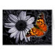 Foto de uma borboleta que pintada da senhora eu justapor em uma grande flor de b/w.