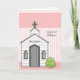 Cartão Bebê Baptismo de Rosa para Meninas com Capela