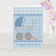 cumprimento novo do bebê dos parabéns. com coelho enchido e os azuis para trazer a este cartão um menino sinta.