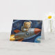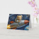 Um lindo ursinho vestindo um capacete espacial está voando através do cosmos em um pequeno foguete