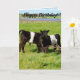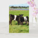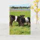 Feliz Em Um Grande Campo De Luz Dois Jovens Vitelos Cintos Cintos E Cintos Estão Aproveitando Uma Tarde Sunny, Com Um Logotipo Feliz De Aniversário.