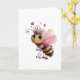 This charming Valentine’s Day card showcases a sweet, wide-eyed bee dressed like royalty, complete with a sparkling jeweled crown. The bee’s fuzzy striped body is paired with soft, translucent pink wings that give the design a gentle, romantic feel. Tiny heart accents float above her head, adding a touch of whimsy and love. With delicate details like curled antennae, dainty shoes, and a shy, endearing expression, this crowned bee feels both playful and elegant—perfect for celebrating someone truly special on Valentine’s Day.