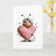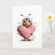 This delightful Valentine’s Day card features an adorable, wide-eyed bee holding a large pink heart-shaped cookie covered in glossy icing and tiny heart sprinkles. With fuzzy textures, gentle shading, and soft heart accents floating around the design, the bee’s warm smile adds an extra dose of charm. The combination of cozy baked-treat details and playful Valentine hearts makes this card feel comforting, cheerful, and full of love—perfect for sharing something sweet with someone special.