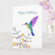 Cartão de aniversário com beija-flor e flores pintados à mão. O interior fica vazio para sua mensagem manuscrita.