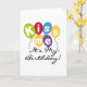Balões coloridos e design de aniversário de texto negro que diz "Beije-me É Meu Aniversário!" em cartões de aniversário, canecas, T-shirts e outros artigos de roupa de aniversário e de presente.