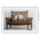 Buldogues ingleses no sofá. Um rouba um beijo do outro