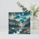 Uma bela ilustração do acampamento ai de uma tenda montada ao lado do riacho com um fundo de montanha e as Luzes Nortes e a lua de cheio no céu.