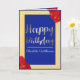 Este cartão de aniversário de Beleza e Beast apresenta um lindo fundo amarelo com um quadro azul real e uma área de texto azul correspondente. Uma rosa vermelha encantadora é colocada no canto superior direito e outra no canto inferior esquerdo. A frase "Feliz Aniversário" é impressa em uma fonte brilhante, no estilo de conto de fadas, com um design de ouro brilhante. O gradiente na cor faz parecer ouro brilhante. Um nome de exemplo é impresso abaixo da saudação em uma fonte elegante que você pode personalizar com seu próprio nome. A área de texto no centro é emoldurada com uma borda branca falso de brilho.
