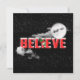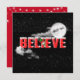 ACREDITE em texto com lua de cheio e boneco de neve em flocos de neve. Papai Noel e a silhueta de dormir na lua com nuvens.