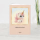 Um cartão de boas-vindas de aniversário divertido com uma imagem de um adorável unicórnio numa paisagem de inverno. No verso, você pode adicionar uma foto personalizada (opcional). Um doce cartão de aniversário feminino.