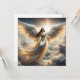A frente deste cartão tem um lindo anjo flutuando na nuvem com asas brancas bonito. A parte traseira da placa é vazio.