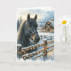 Cartão Belo Cavalo Negro Festivo no Natal da Fazenda
