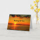 Uma fotografia de um pôr do sol de um lago de ouro e laranja, cheia de nuvens finas, é o assunto do meu cartão "Lake Winnebago Sunset Thinking Of You". O dentro diz "Espero Que Seu Dia Seja Bonito Do Sol Ao Sol". Eu capturei esta cena ao longo da costa de Beautiful Lake Winnebago em Quinney, Wisconsin.