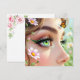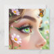 Um doce cartão de vazio para um amigo deixar uma nota e dizer oi. Uma bela fada de olhos verdes com uma borboleta sobre sua ilustração na testa na frente.