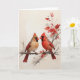 Linda pintura de cardeais masculinos e femininos tocados em um galho de árvore com folhas vermelhas neste cartão de saudação de vazio para aniversário, aniversário, parabéns, obrigado para você, etc.