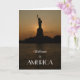 Esta é uma imagem linda para dar as boas-vindas a um novo cidadão dos Estados Unidos da América, apresentando a Estátua da Liberdade enquanto o sol se põe atrás dela. O interior do cartão é personalizável.