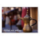 Um pote de café em frente a uma bandeira do Qatari no popular "Souq Waqif" de Doha. Um pote de café simboliza as boas-vindas em todo o mundo árabe.