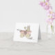 Um coelho recheado senta-se numa velha carruagem de bebês segurando uma roda de alfinete. Felicitar outra pessoa ou anunciar o nascimento, adoção ou batizar da sua pequena. O dentro é vazio para sua própria mensagem. Isto vem em três versões, com uma carruagem rosa, azul ou verde suave. Também presente - um ratinho de cinza.