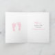 Parabéns na sua nova menina, pegadas de bebê, bebê dormindo em uma nuvem cor-de-rosa com estrelas brancas para novos pais. Este bebê é desenhado com pele mais escura para representar bebês de cor.