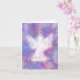 Lindo anjo branco com um deslumbrante fundo roxo bokeh. Um cartão para perda, luto, simpatia ou alguém que está passando por um momento difícil com doença ou depressão.