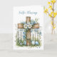 A páscoa é um tempo de alegria, renovação e esperança, e este cartão maravilhosamente desenhado é perfeito para compartilhar desejos calorosos com qualquer um. Apresentando uma cruz de madeira cortada em flores azuis macios contra uma cerca branca rústica, o design captura a beleza da estação. Dentro, uma mensagem simples, mas pensativa, envia bênçãos Páscoas e votos de felicidades para um primavera feliz e brilhante. É uma maneira adorável de espalhar alegria de férias.