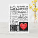 Este cartão de aniversário é um lembrete bonito de quem nós somos no cristo. Incentivo escrito no design gráfico da tipografia em preto e branco. Sentimento em um coração vermelho.