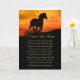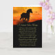 Um cartão de bênçãos de solstício de verão com um cavalo galopante em um pôr do sol com aves. Um poema original, para enviar boas intenções e bênçãos neste solstício de verão.