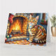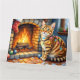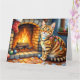 Cartão Bengal Cat Fireplace with Christmas Lights