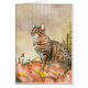 Gato Bengala fantástico colocado debaixo de um véu de chuva brilhante e cama de flores exóticas com uma borboleta solteiro um cartão de saudação único que qualquer amante de gato quer enviar aos seus amigos.