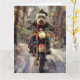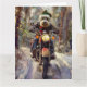Cartão Bernedoodle Dog Andando na Motocicleta Natal