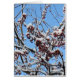 Foto de uma árvore que ainda carrega bagas após a primeira neve da estação. Este seria um cartão de excelente a ser utilizado nas férias de inverno ou em qualquer altura para um entusiasta da natureza.