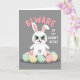This design shows a minimalist gray background with a stylized white rabbit centered up front, its pink inner ears, rosy cheeks, and soft paw pads giving it a sweet look 🐰. The rabbit’s narrowed green eyes and slightly raised brow create a teasing, “don’t underestimate me” stare, like it’s daring a close friend to step closer. A tiny fang peeks out at the corner of its mouth, adding a mischievous edge, while a black “X” sits on its belly as a cheeky mark. At the rabbit’s feet, several oval eggs form a loose cluster, decorated with simple stripes in pastel mint, pale yellow, and blush pink 🌷. Near the top, the word “BEWARE” curves in rounded pink letters, drawing attention first. Beneath it, “OF THE BUNNY KICKS” appears in stacked white text, centered and easy to read against the gray. The overall layout keeps the rabbit and eggs anchored in the middle, with the warning text hovering above in a neat, balanced arrangement.