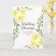 Cartão de saudação de casamento com uma escritura do livro de Bíblia de John 15:12 e decorado com flores amarelas brilhantes entre as formas de verde pintadas com aquarela. No dentro está um tom muito leve de amarelo e texto que você pode editar para ajustado de suas necessidades.