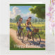 Este cartão de aniversário apresenta pessoas que desfrutam de uma bicicleta no país.