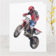Os entusiastas do MX amarão esta fotografia de uma bicicleta vermelha da sujeira durante uma raça. Excelente para pilotos e observadores do esporte. Os amantes do motocross unem-se! Personalize seu próprio cumprimento.