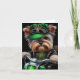 Cartão Biewer Terrier Dog Dirigindo Ruas de bicicleta. Di