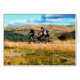 Uma aquarela de três homens pedalando nas colinas galesas.