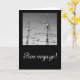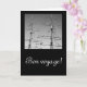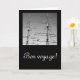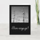 Cartão preto com fotografia a preto e branco dos mastros dos navios e o texto da viagem. Personalizável.