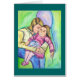 Esta pintura é da minha irmã segurando minha sobrinha na festa de aniversário dela. Minha sobrinha tem suas coisas favoritas de seu pacificador, cobertor roxo e um balão. Ela está em sua cor de rosa favorita. Com todas essas coisas favoritas, nunca é completo sem um beijo e abraço de sua amada mamãe, minha irmã. Eu adoro esta imagem porque ela tem doce ternura de uma mãe e filha particulares em um momento no meio do caos da festa de aniversário infantil. Gosto da paz que ambos têm durante o breve momento para um abraço e um beijo.