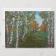 Este design apresenta uma pintura do artista Poste-impressionista romeno Kimon Loghi (1871-1952). Mostra uma floresta com pássaros proeminentes. Há algumas folhas marrons no fundo. Em termos botânicos, uma bétula é uma árvore de madeira folheada e folhada do gênero Betula, que possui um tronco fino, formado por diferentes tons de cinza. Embaixo das árvores há um chão pastoso com algumas flores silvestres vermelhas crescendo. O céu está claro e azul claro.